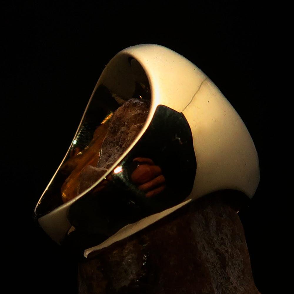 Excellent crafted oval domed Men's blue Cross Lorraine Ring - solid